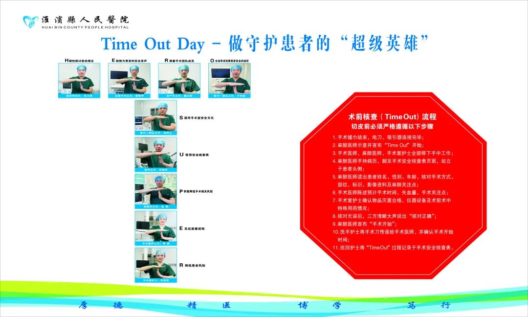 营造手术安全文化氛围,术前核查(time out)——做守护患者的“超级英雄”,确保正确的手术患者、正确的手术部位、正确的手术方式。