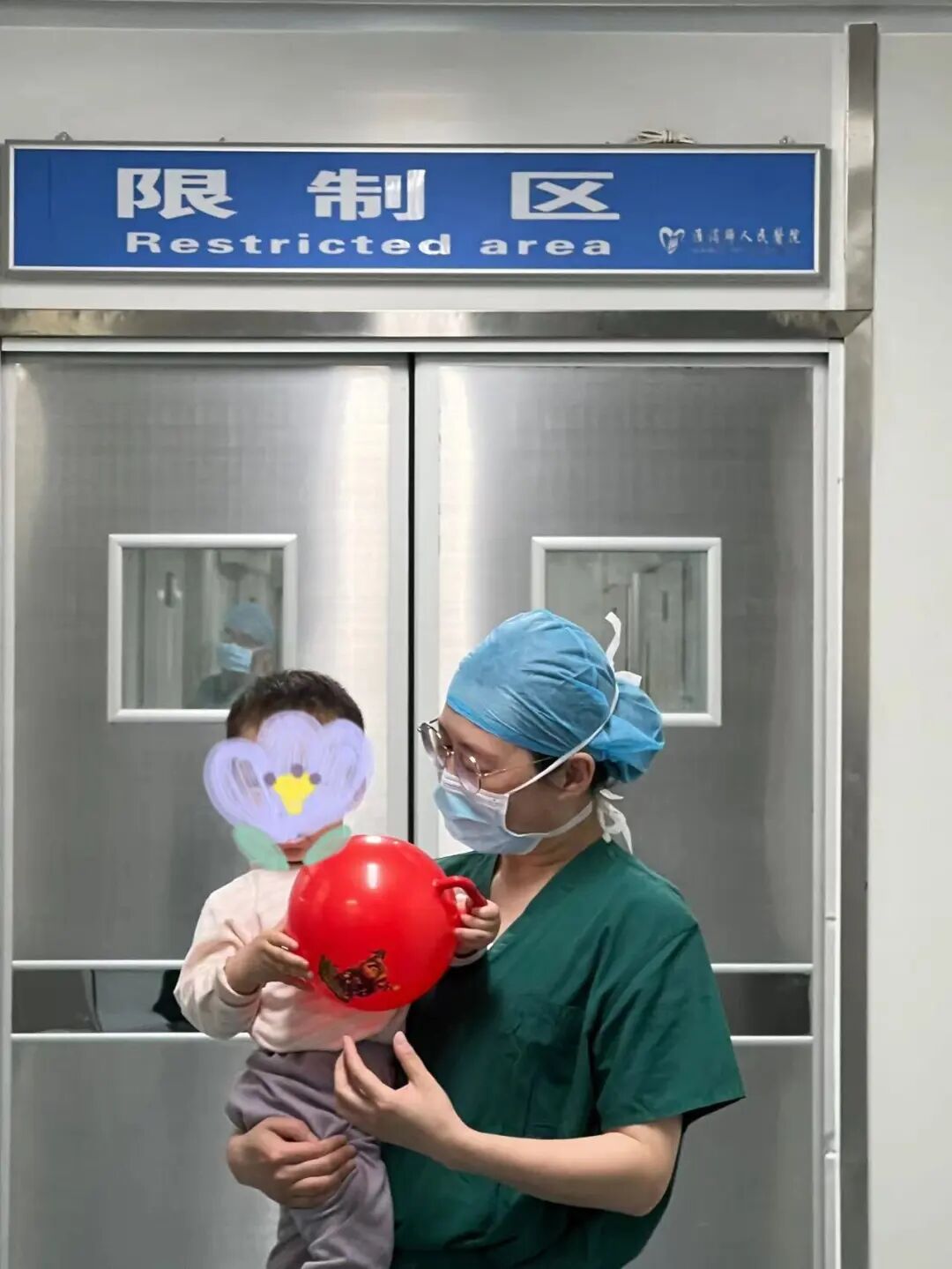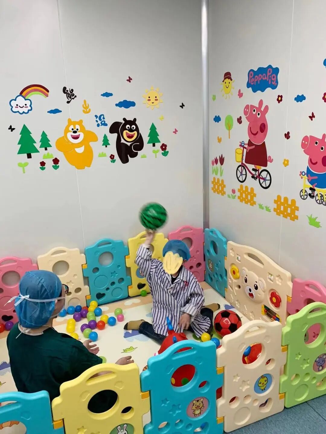 为手术患儿准备爱心玩具、绘本、奖励贴及温馨游乐场地,目的是减轻患儿的恐惧感。您看,在医护人员的陪伴下孩子们玩的乐此不疲,竟忘了是来做手术的了。