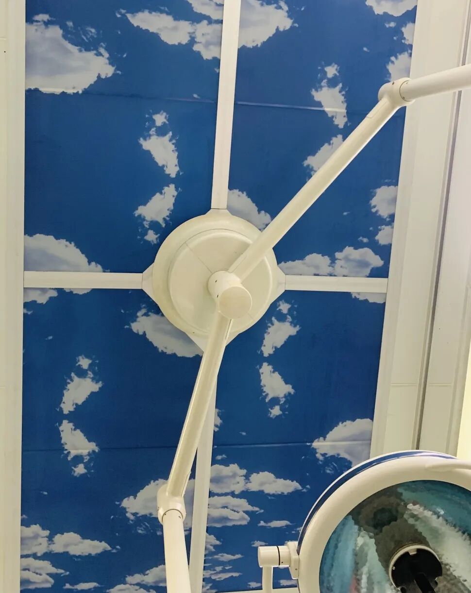 每个手术间都可以播放舒缓、轻柔的背景音乐,并将手术床上方的白色天花板改为蓝天白云式图案,让患者有一种置身于大自然的感觉。