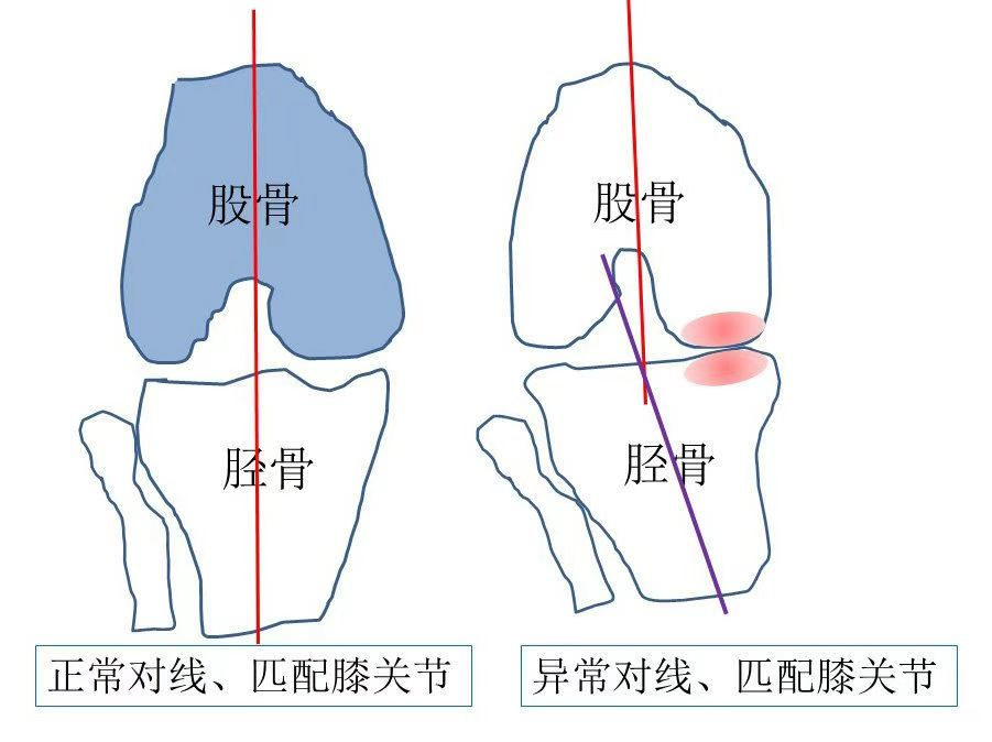 发表时间:2023-06-02 15:51 膝关节骨性关节炎(OA)又称退行性骨关节病,属于关节提前老化,特别是关节软骨老化,是一种由于关节软骨退行性变,引起的关节软骨完整性破坏及关节边缘软骨下骨板病变,继而导致关节症状和体征的一组慢性退行性关节疾病,被认为是一种慢性疾病会使患者关节疼痛、僵直畸形、功能障碍,多见于中老年人。 骨性关节炎是最常见的关节炎形式。最早体现在手的小关节,它是一种影响关节所有组织的疾病,包括软骨,骨骼,韧带和肌肉。但最常见的是影响膝关节、髋关节、脊柱、手等部位,其中膝关节炎占41%。好发年龄通常在 50 岁之后,如果有关节损伤,发生会更早开始。它会干扰患者对生活的享受,尤其是喜欢户外运动的。膝关节是最常见的下肢关节。患有骨性关节炎的人在进行常规活动(例如步行和上下楼梯)时经常会出现膝盖疼痛。 ![]() 根据骨关节炎累计部位,分为内侧侧室、外侧间室、髌股间室骨关节炎。在膝关节骨性关节炎中,导致骨骼(股骨和胫骨)、关节和软组织发生病理改变,从而导致疼痛,关节僵硬,关节活动度减少,步态异常和肢体不等长,继而累及髋和踝关节,甚至腰椎疾病。下肢负重轴线(内翻畸形、外翻畸形、旋转畸形、短缩畸形、侧方移位畸形和复合畸形)异常会出现什么情况呢? 下图显示当对线异常的时候,内侧负荷增加,软骨磨损,导致膝关节疼痛。 ![]() OA被认为是一种慢性疾病,老年膝关节疼痛在临床上非常常见,传统治疗手段有非手术和手术治疗,后者典型代表是膝关节表面置换手术,解除病人疼痛,恢复行走功能,但术后满意仅有82%,术后不能获得较高的运动能力和关节屈伸活动能力。 ![]() 临床表现: