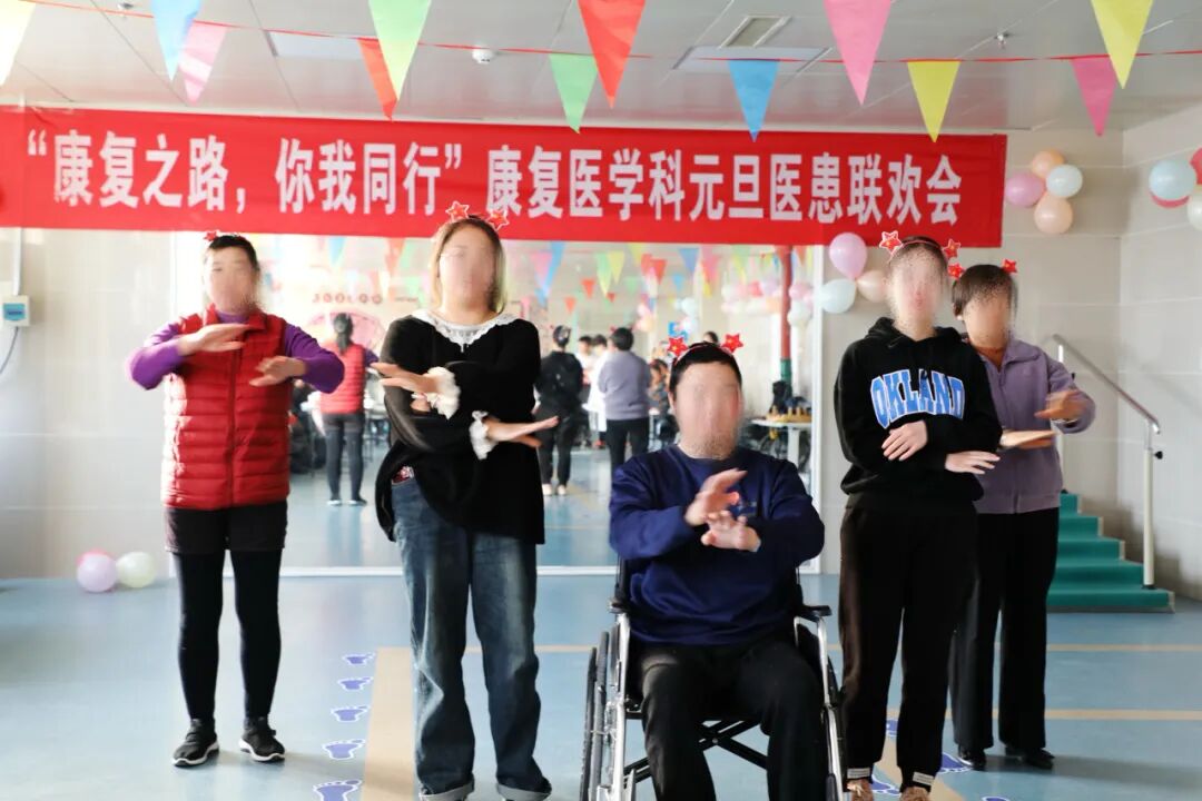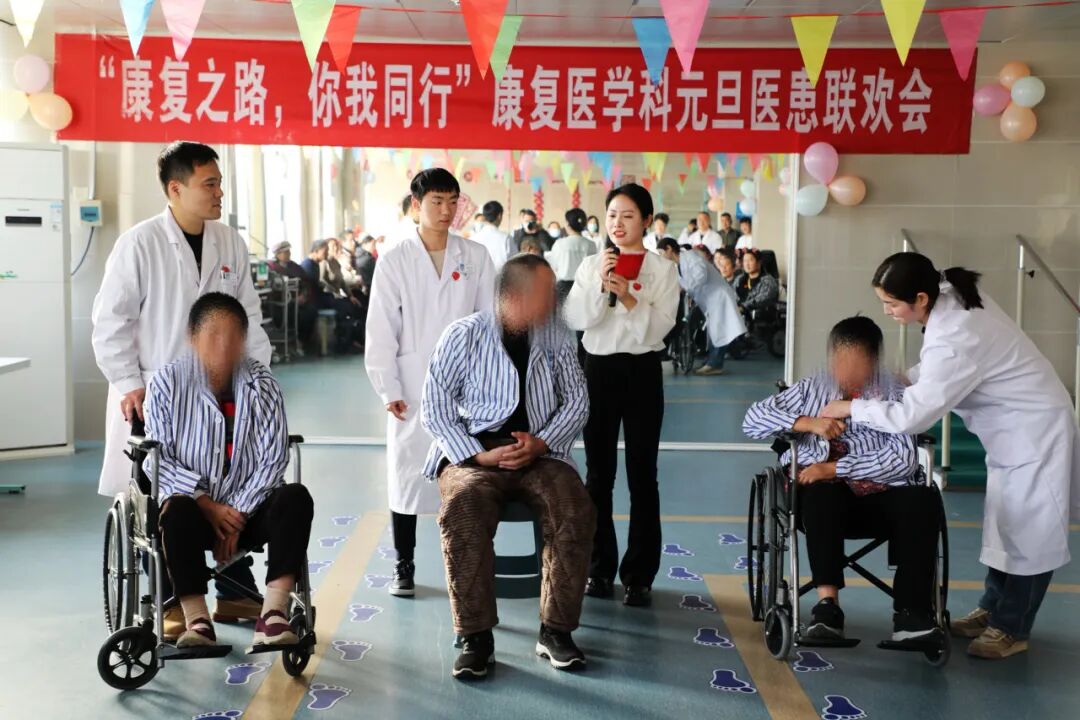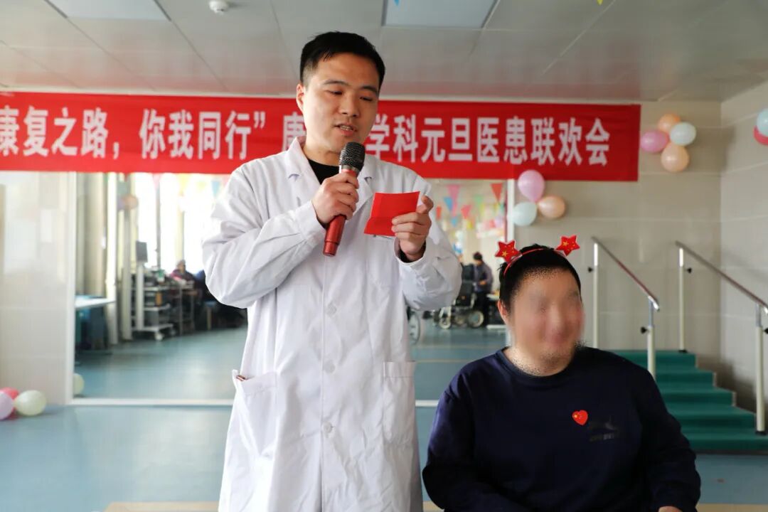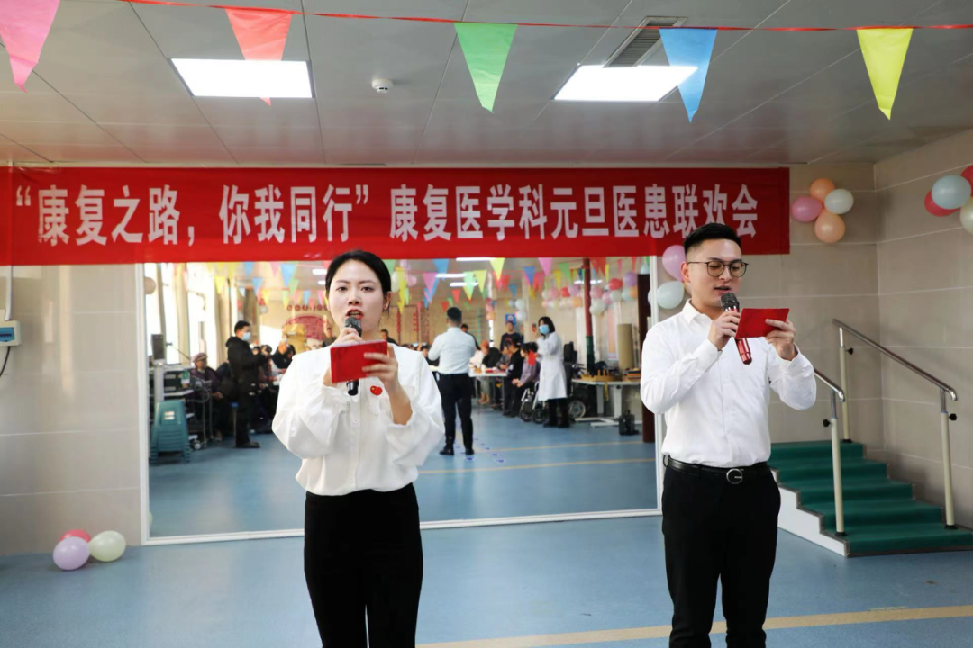 首先,康复医学科的医务人员自编、自导、自演了喜闻乐见的《三句半:新年祝福》,一下就把全场喜庆、欢快的气氛拉满!